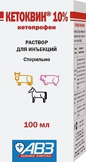 "Кетоквин" 10% - крупному рогатому скоту, свиньям, спортивным лошадям в качестве противовоспалительного, анальгезирующего и жаропонижающего средства при лечении острых и хронических заболеваний опорно-двигательного аппарата (артрозы, артриты, вывихи, тендовагиниты, травмы), при болевом синдроме (травматическая и послеоперационная боль, колики) и гипертермии различной этиологии.