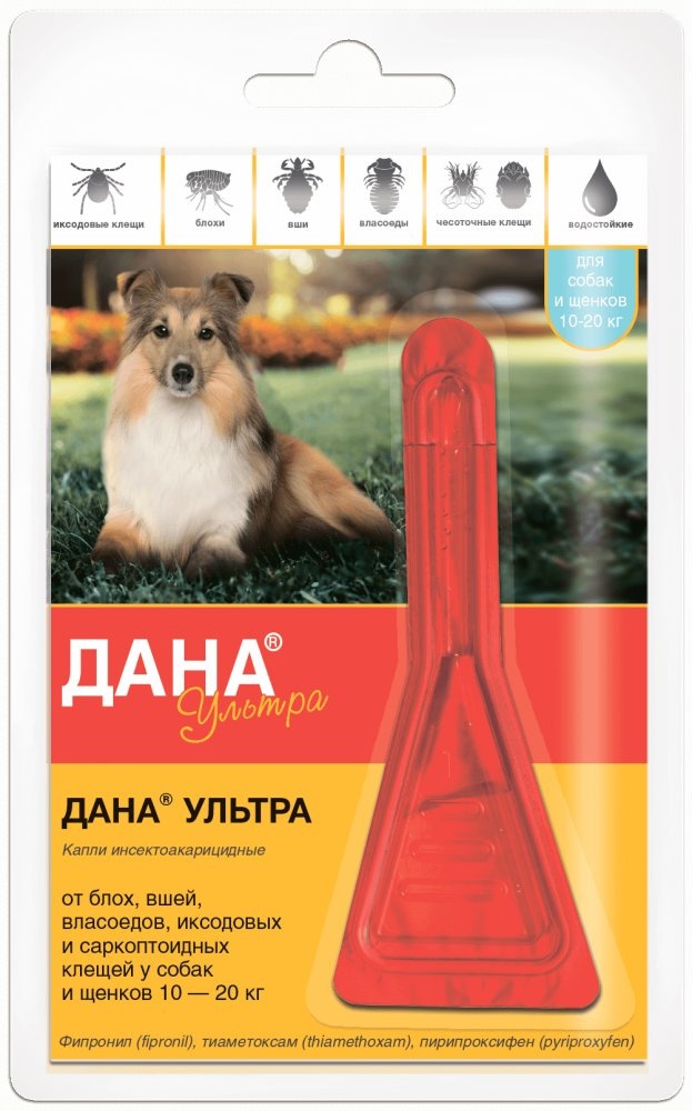 Дана Ультра применяют собакам и кошкам с 10-недельного возраста для лечения и профилактики энтомозов, вызываемых блохами, вшами, власоедами; акарозов, вызываемых саркоптоидными и иксодовыми клещами.