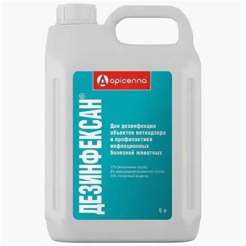 Концентрированный раствор для дезинфекции помещений. Имеет мощное противовирусное действие, в том числе на вирус африканской чумы свиней (подтверждено ГНУ ВНИИВВиМ, г. Москва). Обладает широким спектром антимикробного действия в отношении патогенных бактерий, включая микробактерии туберкулеза. Эффективен против возбудителей грибковых заболеваний. Уничтожает яйца гельминтов. Уничтожает ооцисты простейших ( в т.ч. ооцисты кокцидий и криптоспоридий). Рабочие растворы Дезинфексана активны в течение 20 суток. Средство не имеет резкого запаха, хорошо растворяется в воде. Совместим с инсектицидами для проведения одновременной дезинфекции и дезинсекции.