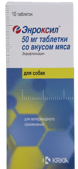 Энроксил таблетки со вкусом мяса для собак, 50 мг.