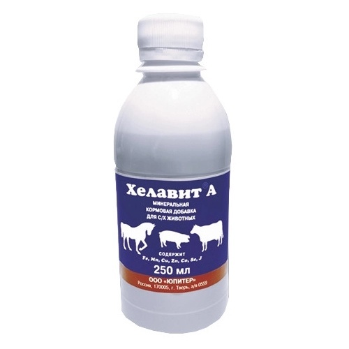 Кормовая минеральная добавка. Содержит микроэлементы в хелатной, биодоступной форме, способствующей их эффективному усвоению организмом. Добавка устраняет дефицит микроэлементов, стимулирует эритропоэз, нормализует обмен веществ, повышает неспецифическую резистентность организма. Применение Хелавита А повышает продуктивность, воспроизводительную способность животных, сохранность поголовья.