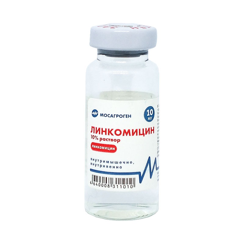 Линкомицин 10 % инъекционный раствор, в 1 мл которого содержится 100 мг линкомицина гидрохлорид моногидрат, вспомогательные вещества и вода для инъекций.
