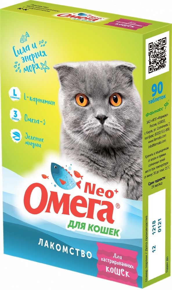 Омега Neo+ для кастрированных кошек с протеином и L-карнитином мультивитаминное лакомство