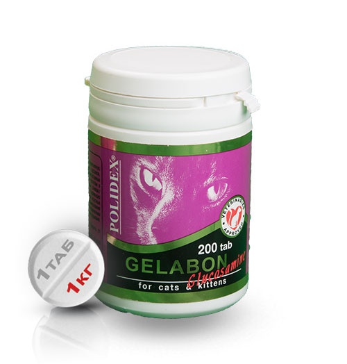 Gelabon plus Glucozamine (Полидэкс Гелабон плюс Глюкозамин). Данный препарат предназначен для профилактики и лечения кошек на любой стадии заболевания суставов. Кошкам показано применение добавок, которые содержат как хондроитин, так и глюкозамин, поскольку считается, что в комбинации эти вещества обладают взаимоусиливающим эффектом. От аналогичных добавок с глюкозамином для кошек других производителей, Gelabon plus Glucozamine (Полидекс Гелабон плюс Глюкозамин) отличает наличие метилсульфанилметана (МСМ) - биологически активного соединения серы, которое легко усваивается и присутствует во всех живых организмах. МСМ способен нейтрализовать свободные радикалы, регулировать кислотность желудочного сока, поддерживать здоровое кровообращение, нормализовать функции иммунной системы, обладает противовоспалительным, обезболивающим, противоаллергическим, противопаразитарным действием, улучшает структуру кожи, шерсти.