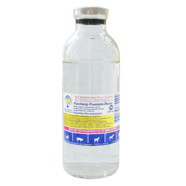 Раствор Рингера-Локка – комбинированный лекарственный препарат в форме раствора для инъекций, содержащий в качестве действующих веществ 0,8 г натрия хлорида, 0,02 г калия хлорида, 0,02 г кальция хлорида, 0,02 г натрия гидрокарбоната, 0,1 г глюкозы и в качестве растворителя воду для инъекций до 100 мл.
