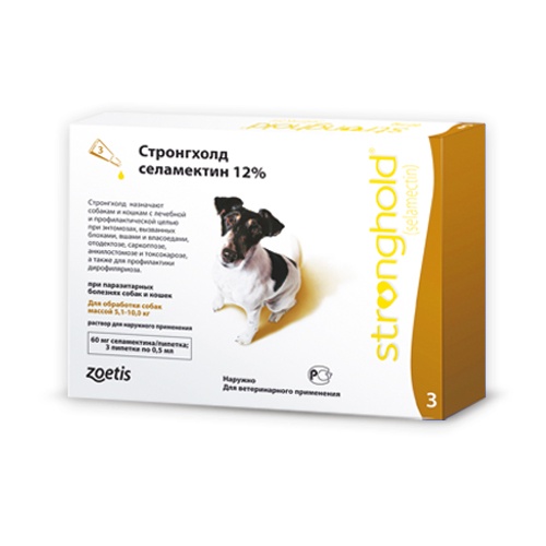Стронгхолд (Strоnghоld) для собак 5-10 кг. 3 пипетки (коричневый) 60 мг. Пфайзер (Pfizer)