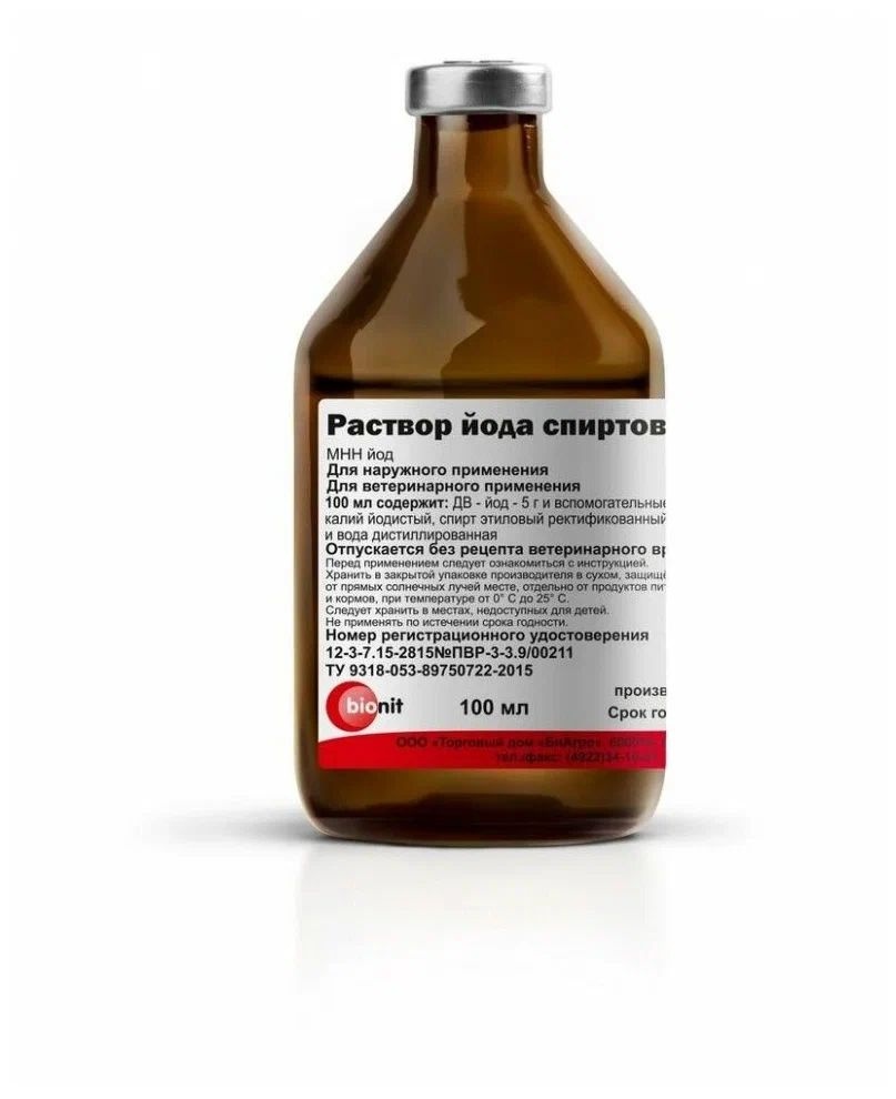 Раствор йода спиртовой 5% - антисептическое средство для животных, предназначено:
